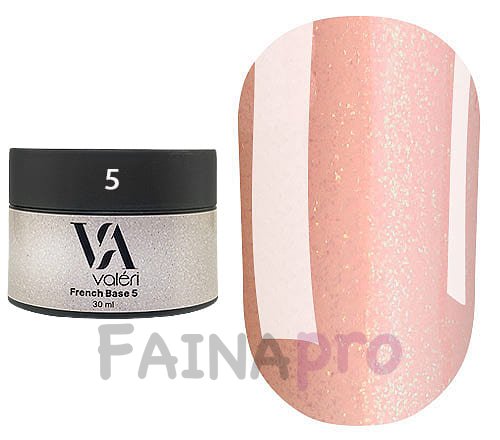 Кольорова база Valeri French base №005 (Бежево-рожевий з золотим мікроблиском), 30 мл