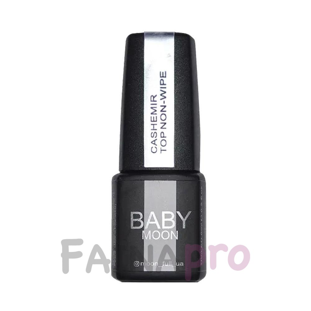BABY Moon это инновационный продукт высокого качества, разработан польской компанией. BABY Moon Cashemir Top необычное матовое верхнее покрытие для гель-лака, которое придаст любому цветному покрытию кашемировую текстуру, обеспечивает стойкость и прочность. Матовый топ имеет эффект нежной кашемировой матовости, это позволит легко преобразовать глянцевый гель-лак в матовый. Топ имеет липкий слой. Полимеризуется в LED-лампах и УФ.