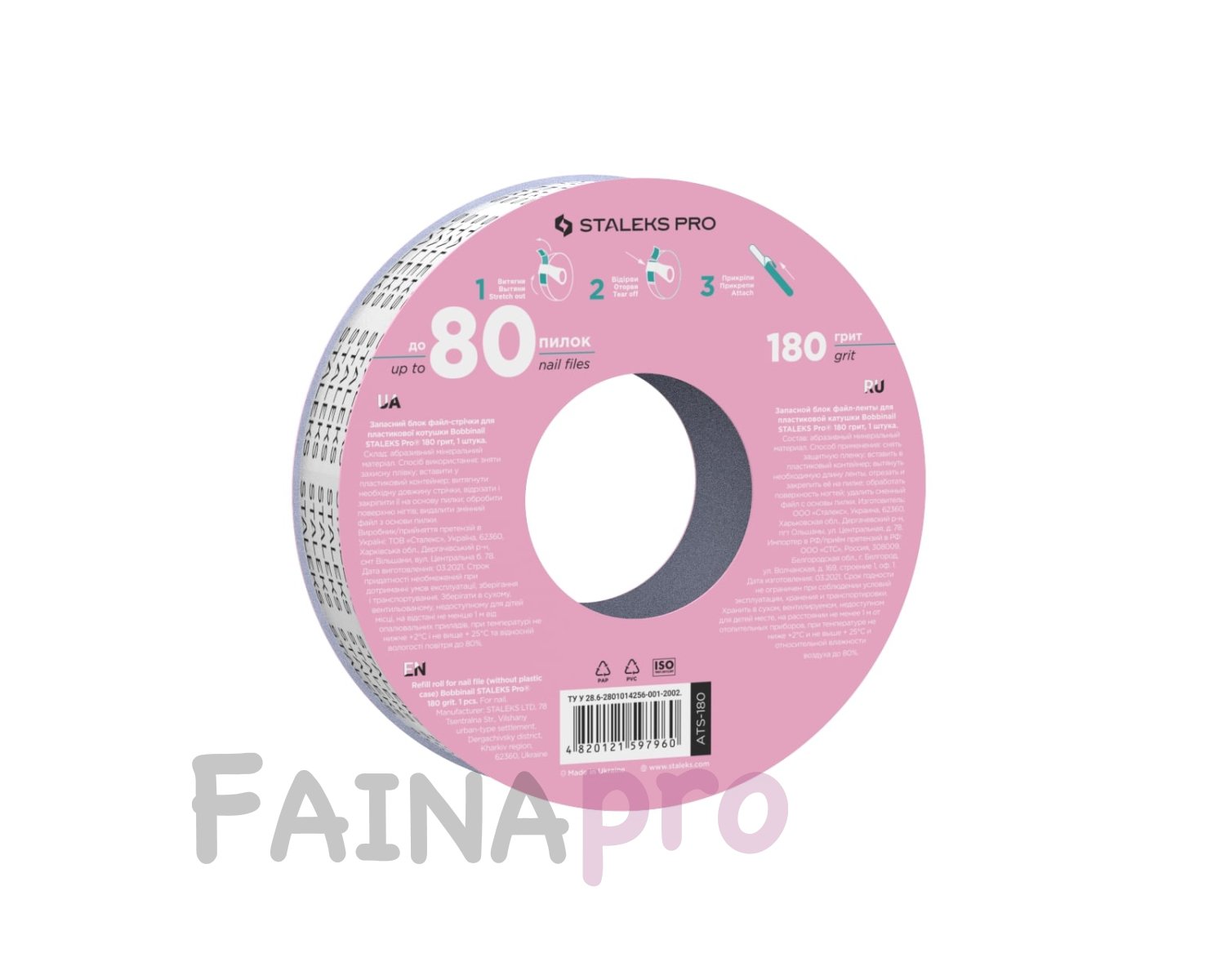 Запасний блок файл-стрічки для пластикової котушки Bobbinail STALEKS PRO 180 грит (7 м) (ATS-180)