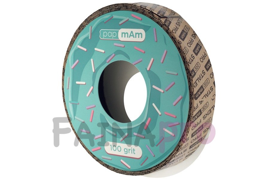 Безклейові змінні файли pap mAm (тат мам) підходять для котушки з кліпсою. Вони надягають на металеву основу як чохол, повністю закриваючи її з обох боків та торців. Такий принцип кріплення дає майстру ще більше впевненості у своїх рухах та убезпечить клієнта від випадкових порізів. Стрічка 7 м не перфорована – майстер може відрізати необхідну для роботи кількість абразиву. Пилочка-основа завжди залишатиметься чистою, без залишків клею після зняття змінного файлу.