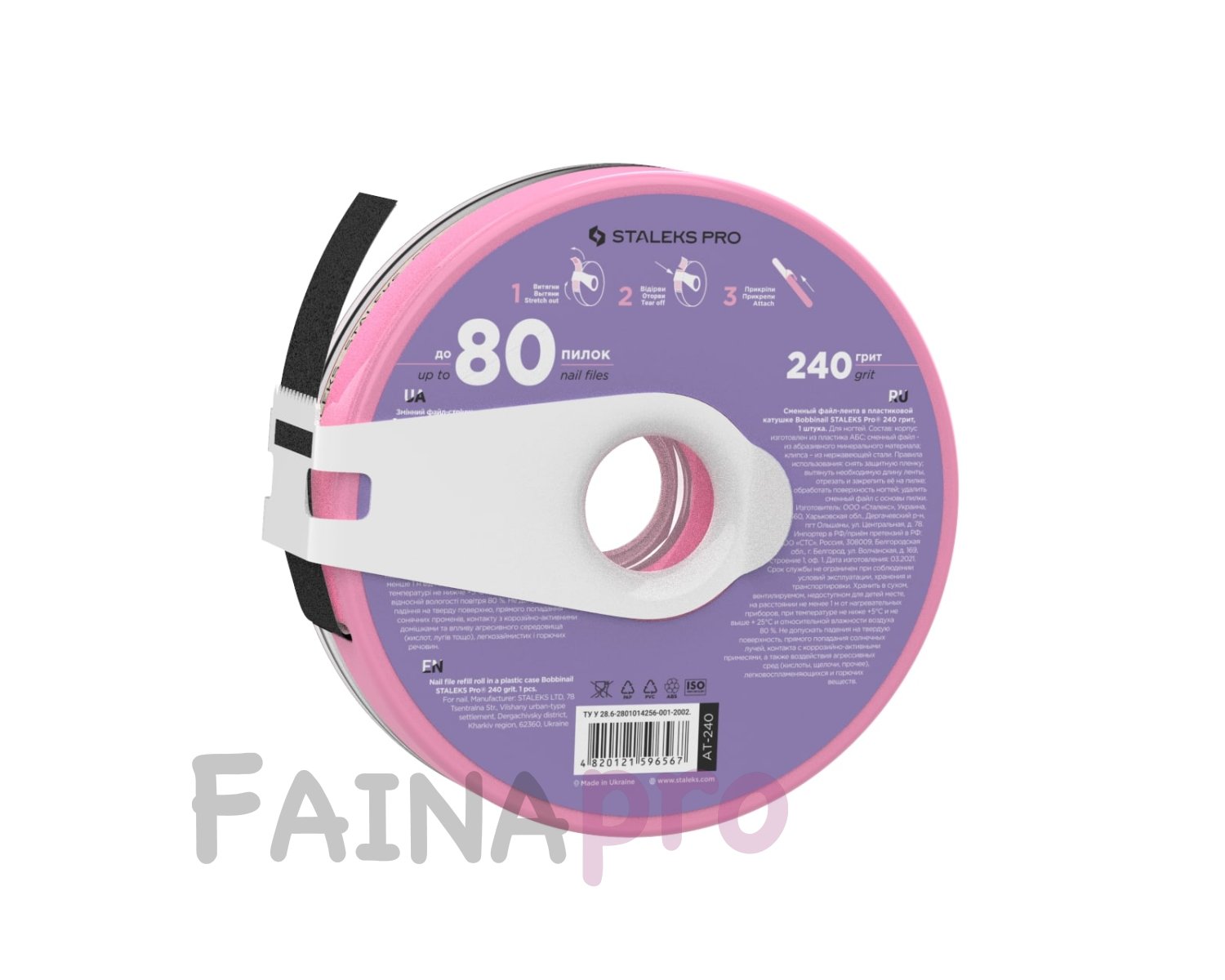 Змінний файл-стрічка в пластиковій котушці Bobbinail STALEKS PRO 240 грит (7 м) (AT-240)